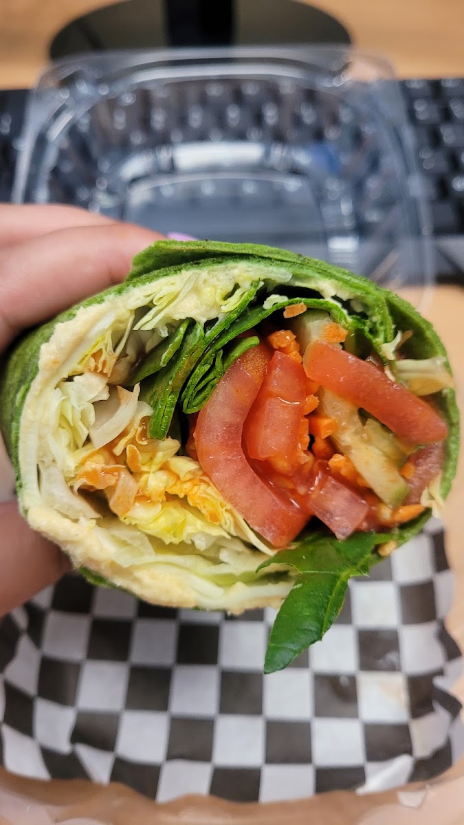 Visitors typically come here midday, especially on Fridays when the place buzzes a little more with office crowd lunches. The seating inside is cozy rather than flashy, making it a nice spot for a quick break or catching up with a friend over a sandwich or a wrap. The outdoor parking is ample, which helps accommodate the busy lunch rush. The walls feature warm artwork that subtly adds to the welcoming feel without overwhelming the space.